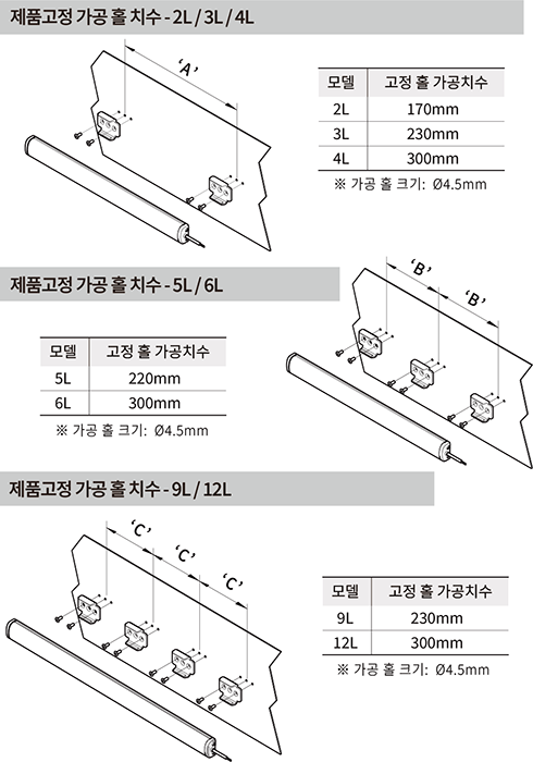 ● 착탈식 취부 고정대 구조로 취부 홀 간격을 자유롭게 설정